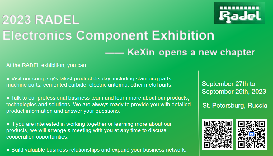 I am pleased to announce that KeXin will be joining you at the 2023 RADEL Electronics Component Exhibition in St. Petersburg, Russia, scheduled from September 27th to September 29th, 2023.